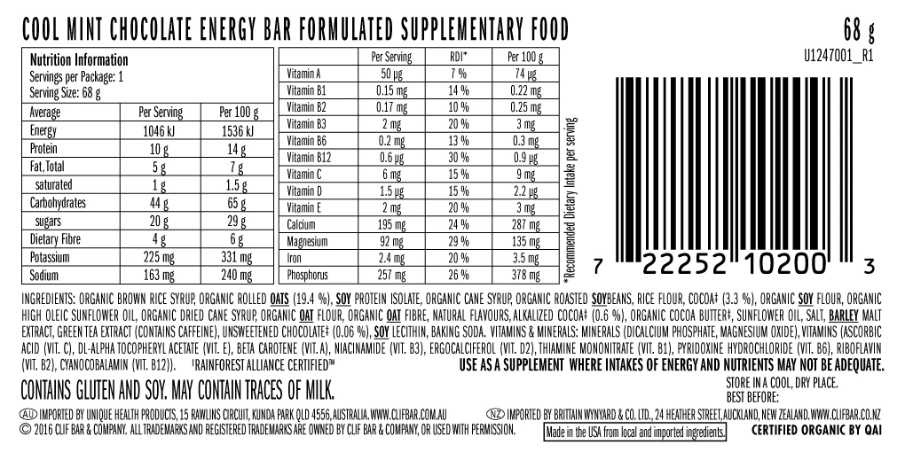 CLIF BAR Cool Mint Choc Caffeine 68g