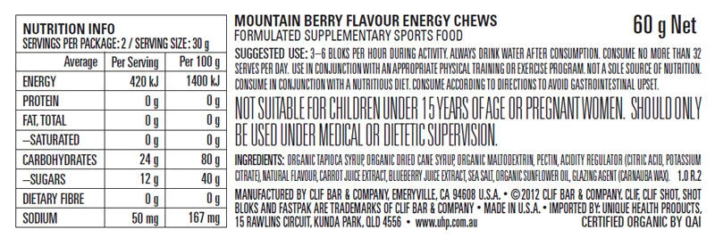 Be the first to review “Cooking And Food CLIF SHOT BLOKS MOUNTAIN BERRY 60g” Cancel reply