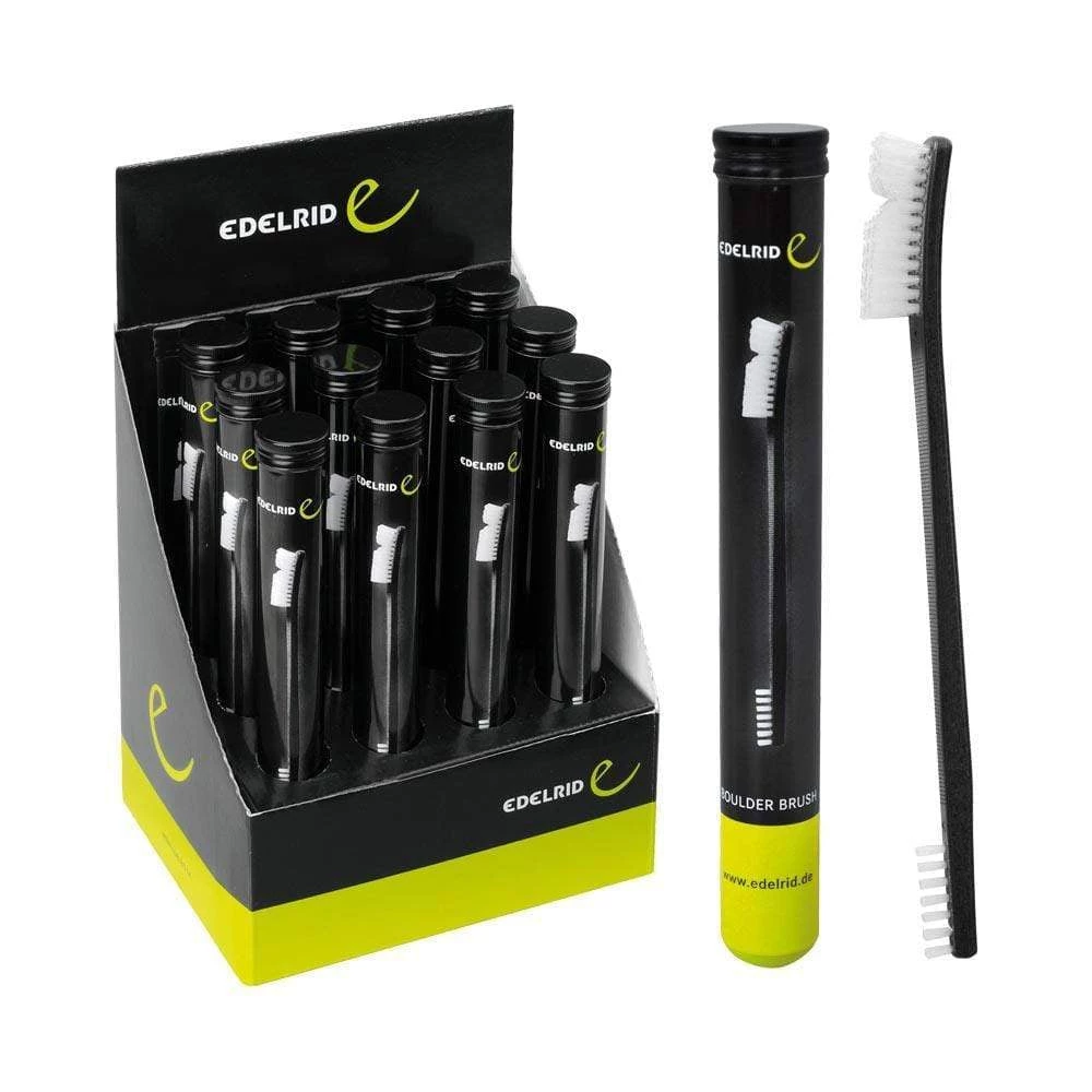 Featuring two sized brushes in a compact size, the Edelrid boulder brush can be taken anywhere.