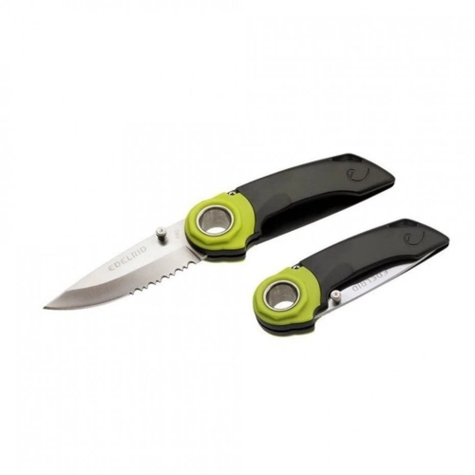 The very sharp, partly serrated stainless steel blade is ideal for all cutting requirements outdoors and even perfectly suitable to shorten static lines or ropes.