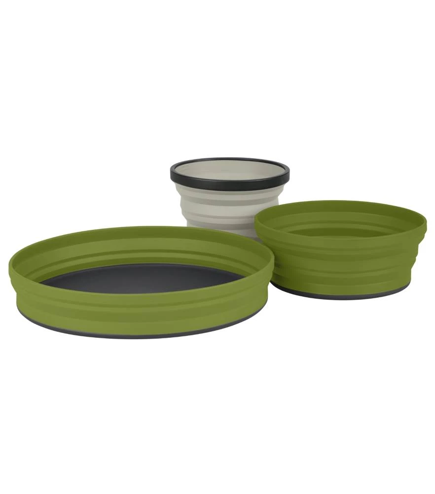 Our comprehensive X-Set 3-Piece includes one X-Bowl, one X-Plate and one large volume X-Mug. This durable, compact and space-saving dinnerware set comes in a lightweight zippered Ultra-Sil storage pouch.