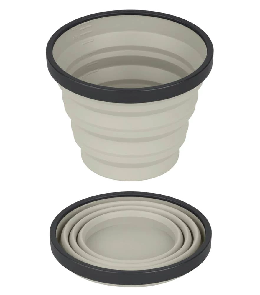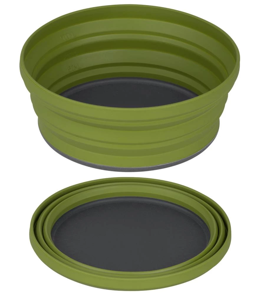 - Collapsed X-Mug and X-Bowl nests inside the flat X-Plate