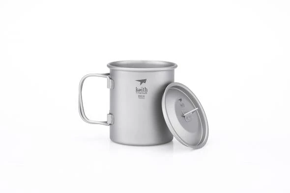 Keith Titanium Single Wall Titanium Mug W. Folding Handle/Lid 300ml