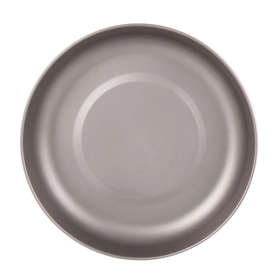 This raised-lip titanium camping plate is made from food grade titanium, is ultra-lightweight and as strong as steel and great for camping.