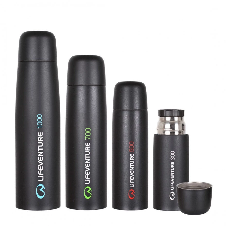 These sleek thermally-induced vacuum flasks come with a traditional screw-in stopper with pouring spout. They keep drinks hot for up to eight hours or cool for 24 hours. The stainless steel lid can be used as a cup.