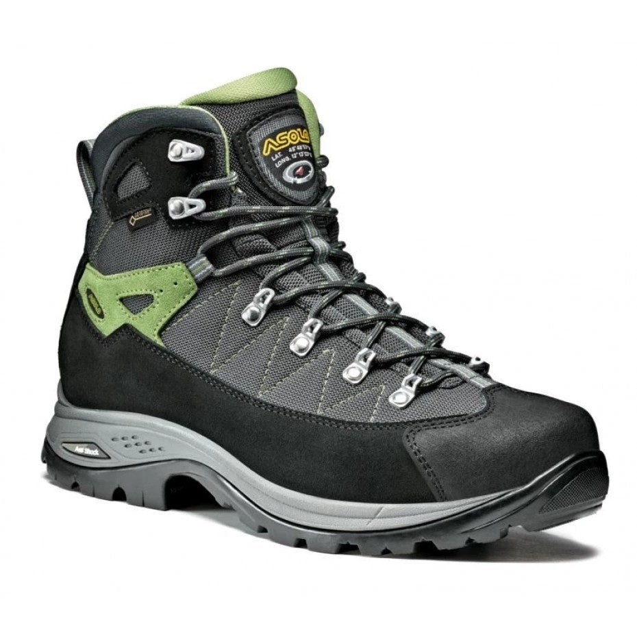 Water-resistant suede mm 1,6-1,8 + Cordura® upper. Gore-Tex® lining, waterproof and breathable. Midsole in Eva double density. Outsole “Duo Radiant” Asolo/Vibram® with Megagrip compound. Highly technical sole, the balance of the outsole has self-cleaning lugs designed for optimum performance on varying types of terrain. Classic lacing system. Toe rubber cap.