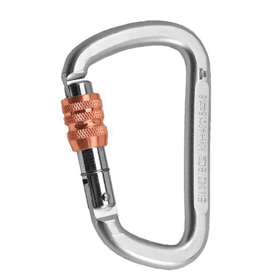 - Screw Lock (S)- the manual screw lock on the gate is controlled simply using one hand. Once the screw lock in the upper part of the carabiner is rotated down onto the gate,the carabiner can be opened.
