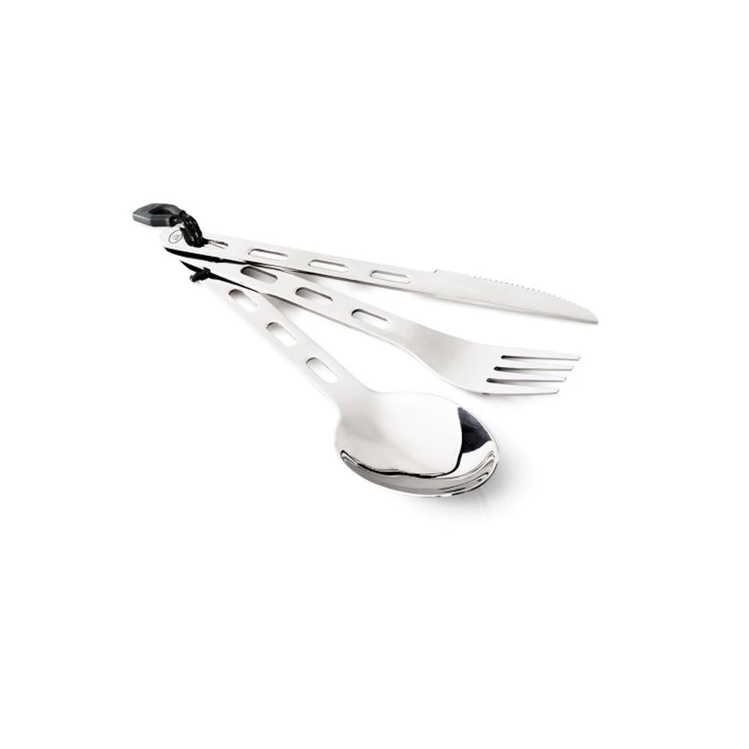 Simple-yet-sturdy Glacier Stainless 3 pc. Ring Set offers a bombproof set of camp-ready utensils that will last for generations. • Classically rugged, compact ring cutlery set with a space-saving, flat profile. • Ultra-durable Glacier stainless steel is rust-proof, fire-proof and non-reactive. • Includes lanyard to keep set organised. • Includes: Spoon, Fork, Knife, Lanyard • Material: Stainless Steel • Length: 16 cm